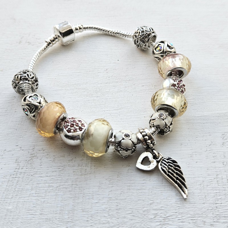 Elegant charm and bead bracelet made of Tibetan silver, 925 silver, and Murano-style glass, adorned with zirconia crystals — a perfect gift to treasure and collect.
